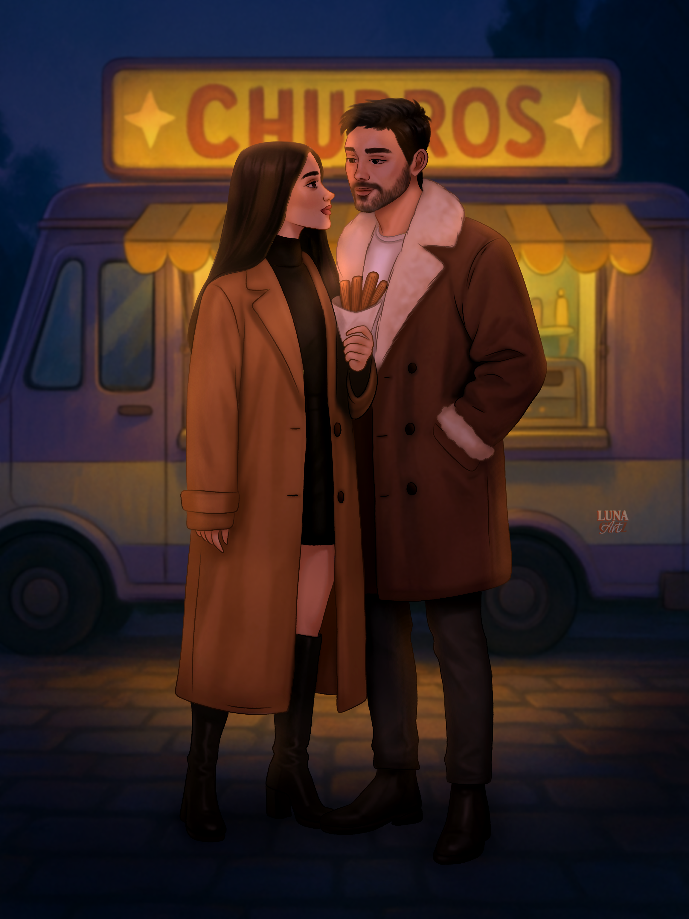 The temperature was as cold as ever, the air just as perfumed by the cinnamon sugar from the churro truck. “Would you like a churro before you go?” he asked her politely.