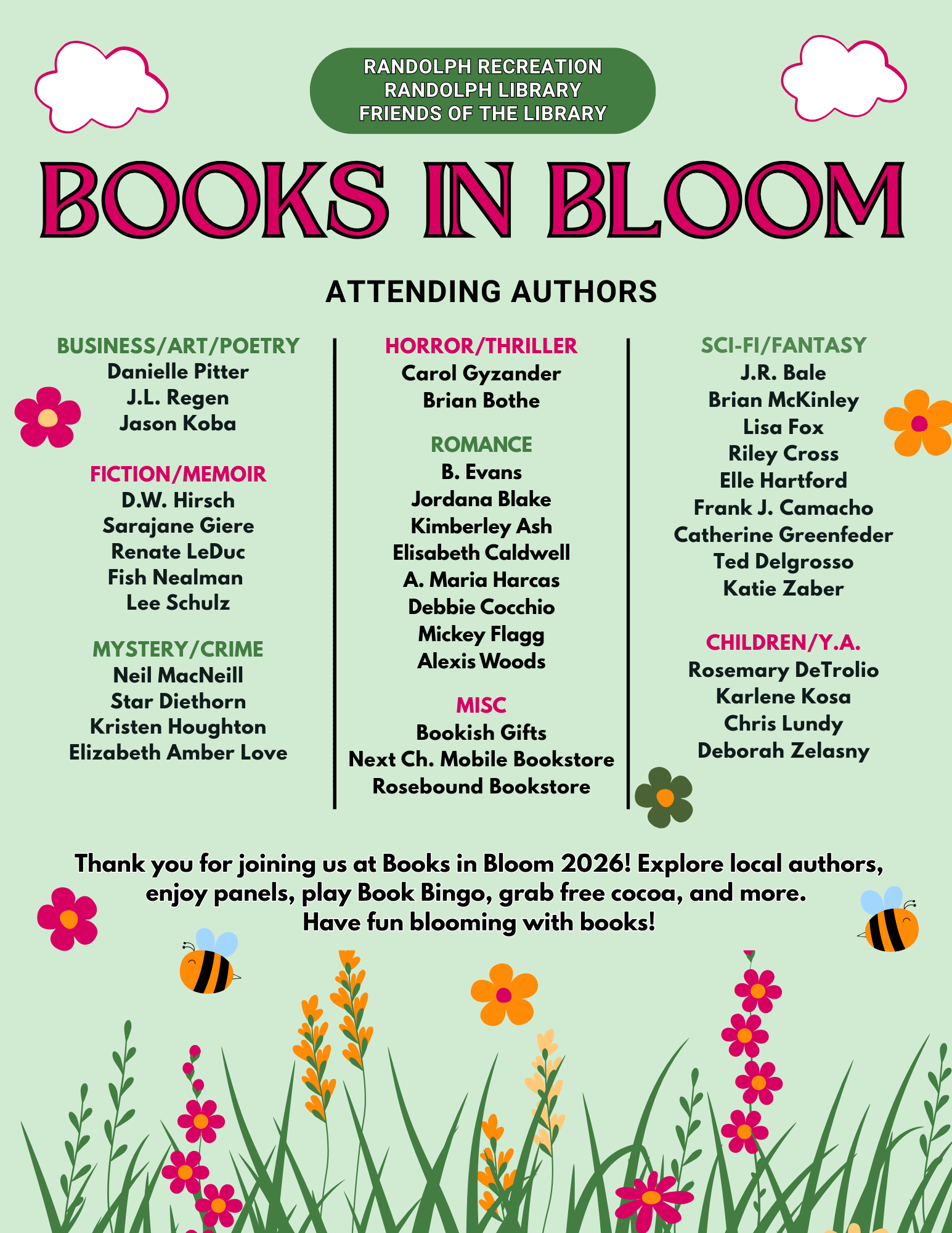 Whether you’re a devoted reader or just looking for a fun outing, Books in Bloom offers something for everyone. Come for the books, stay for the community—and don’t miss your chance to win a great read in the raffle!